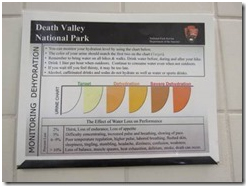 Hãy quan sát mầu nước tiểu của mình khi đi tè ở Thung Lũng Tử Thần. Mầu cam đỏ tận cùng bên phải cho biết độ mất nước đã nghiêm trọng, nguy hiểm tới sinh mạng.