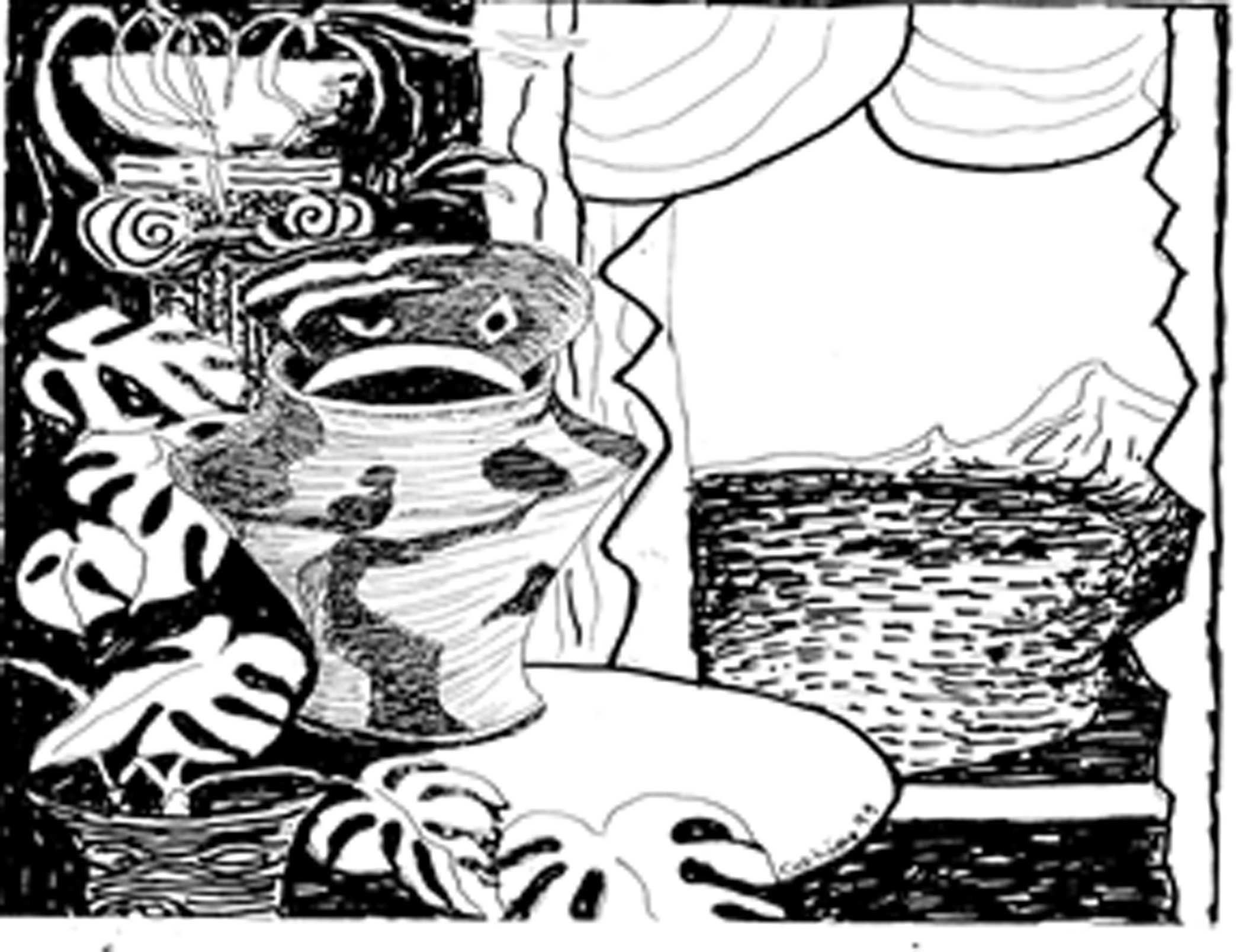 Tôi không lầm nhà vì đã thấy một tấm hình nhỏ trên tường; hình chụp nhiều người trong đó có bóng quen thuộc của bạn tôi: một gã to con, râu quai nón vàng, mắt xanh đứng giữa, bên trái là hai người lớn tuổi, bên phải là hai cô gái trẻ. Phòng khách có bày la liệt những chậu cây cảnh xanh tươi, trái hẳn với cây cỏ ngoài vườn vàng úa héo hon. Trên một cái kệ thật cổ, có tượng một vũ nữ Bali trong điệu múa cổ truyền. Tôi còn thấy một hộp gỗ của Nhật Bản có tám vị tiên nhỏ xíu như ngón tay, nét khắc tinh xảo và áo quần đẹp đẽ. Nhưng kìa, tôi đã thấy kỷ niệm của tôi để ở trong bếp thông với phòng khách: một con búp bê – một gã nhà quê người Indonesia, đầu đội nón rơm, ôm trên tay một lục huyền cầm; đôi mắt sáng long lanh với bộ râu rậm, yên lặng nhìn tôi trân trân. Gã tên Sikabayan, tôi đã tốn không biết bao nhiêu công lao để tạo thành gã, chỉ với một lưỡi dao và ít sơn màu. Một người bạn gái đã may quần áo cho, và bây giờ y vẫn ngồi trên cái ghế đẩu, dáng thật linh động, gảy khúc đàn câm trong căn nhà vắng lặng.