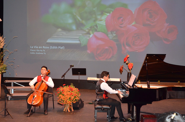 Hay nhạc phẩm “La vie en Rose” của Edith Piaf với phần trình diễn của Gia Huy piano và cello (vĩ cầm) Andrew Tu rất tuyệt vời. Đây là ca khúc nỗi tiếng, có lẽ những người yêu nhạc đều có một lần nghe qua, tôi tạm dịch là (Cuộc sống trong màu hồng) hay “Cuộc sống trong sắc màu hạnh phúc”  Đây là một bài hát nỗi tiếng của ca sĩ người Pháp Édith Piaf viết lời, nhạc của Louiguy vào năm 1945. Điều chúng tôi muốn nói là Andrew đã sử dụng một cách êm ã, du dương tiếng vĩ cầm như thoang thoảng, như chạm đến nỗi sâu thẳm của lòng người. Chúng tôi xin nói thêm, ca khúc La Vie En Rose ra mắt công chúng Pháp trong một hoàn cảnh đặc biệt khi nước Pháp vừa rút chân ra khỏi chiến tranh. Bài hát này mang niềm hy vọng và tình yêu mới trong cuộc sống. Cho nên tiếng vĩ cầm của Andrew có chút buồn, chút hy vọng và chút tin yêu nhân bản.