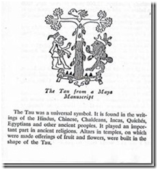 Cây Tam Thế, Cây Vũ Trụ, Cây Đời Sống, trụ vũ trụ Maya hình chữ T (tau) (James Churchward, The Sacred Symbols of Mu).