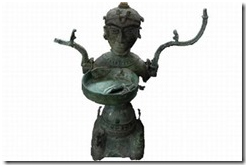 Đèn hình người quỳ Lạch Trường do O. Janse phục chế [Nguồn: sách Bí mật của cây đèn hình người, O. Janse (dẫn lại trong Tạp chí VHNT số 404, tháng 2 – 2018, Vũ Thị Hằng http://m.tapchikhxh.vass.gov.vn/y-niem-ve-su-bat-tu-va-tai-sinh-tren-den-dong-dong-son-n50116.html].