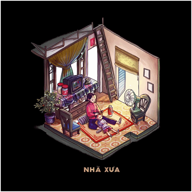 Quán chị Chi ở một trong những ngôi nhà này. Làm sao để nhận ra? Không biết, tôi đã nói là không phải quán xá gì cả mà, chỉ là tới nhà bà chị uống trà chơi vậy thôi và đã là nhà bà chị thì phải tự biết chớ, cần gì hỏi. Phòng khách chị Chi – được gọi là quán – nhỏ lắm, chắc độ chín mười thước vuông gì đó, chỉ đủ chỗ để đặt ba bốn chiếc bàn nhỏ. Nhà không có nhạc, không trưng bày trang trí gì cả ngoại trừ một bức tranh độc nhất treo trên vách, bức tranh đen trắng, cỡ khổ tạp chí, có lẽ được cắt ra từ một tờ báo Pháp. Tranh chụp để thấy một bàn tay giắt một em bé trai kháu khỉnh, vai đeo cặp sách, miệng phụng phịu làm nũng, hai mắt mở to nhưng nước mắt đang chảy dài theo má, phía dưới có hàng chữ nhỏ: “Hôm qua con đã đi học rồi mà”.