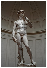 “David” của Michelangelo (1501–1504) – Bather with Long Hair.By Pierre-Auguste Renoi – Vitruvian Man, Léonard de Vinci, 1490