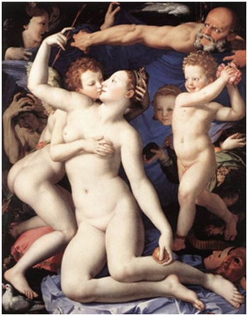 Venus, Cupid, Folly and Time, Agnolo Bronzino, 1550 – La maja desnuda, Francisco de Goya, 1790