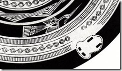 Thêm vòng tròn nòng âm thứ hai chỉ cho biết mắt có âm tính. Ví dụ người thể điệu hóa ‘văn cờ’ trên trống sấm mưa Làng Vặc thuộc tộc Mặt Trời Nước có con mắt âm: