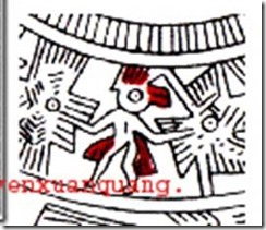 -Thờ thần mặt trời thấy trên một trống Đông Sơn Điền Việt biến cải thành vật đựng vỏ ốc thờ.